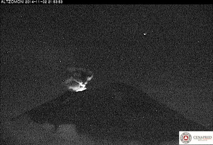 薩摩硫黄島 硫黄岳山頂で弱い火映 23時08分の気象庁火山カメラ画像(岩ノ上)