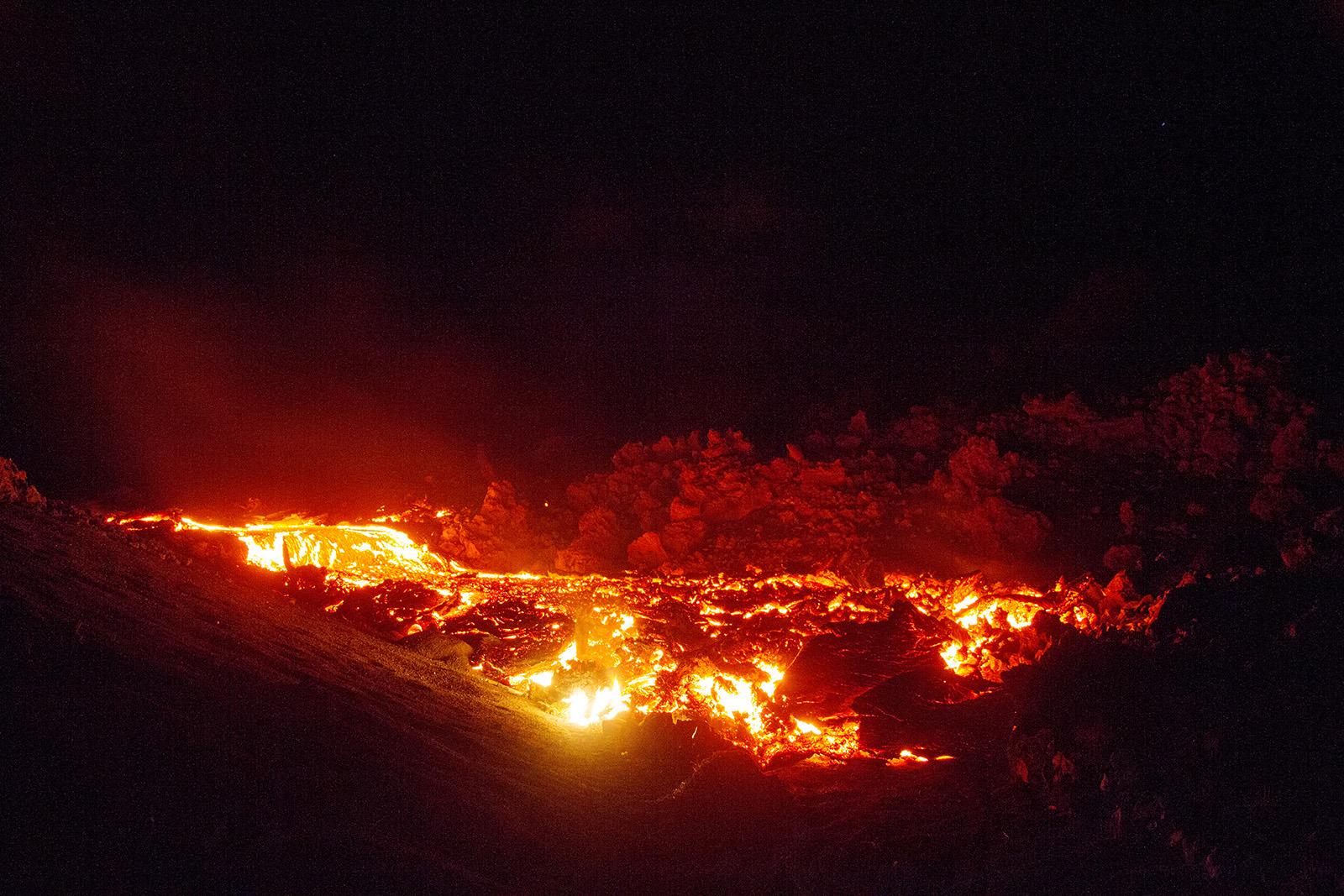 アイスランド Holuhraun溶岩原での割れ目噴火活動
