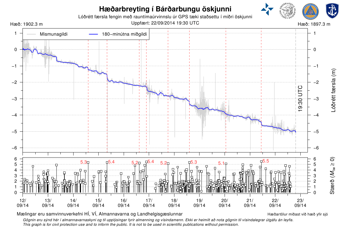 [123km NNE of Vik, Iceland] 09:22:44JST N64.423 W17.946 D7.6km M4.5 (USGS)