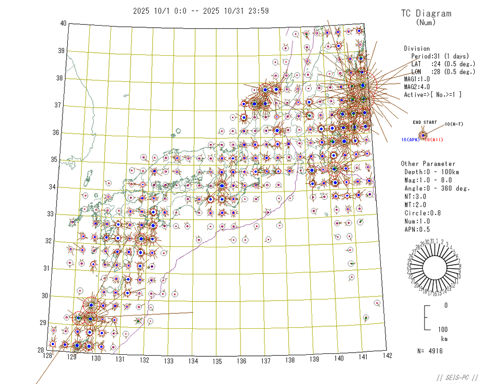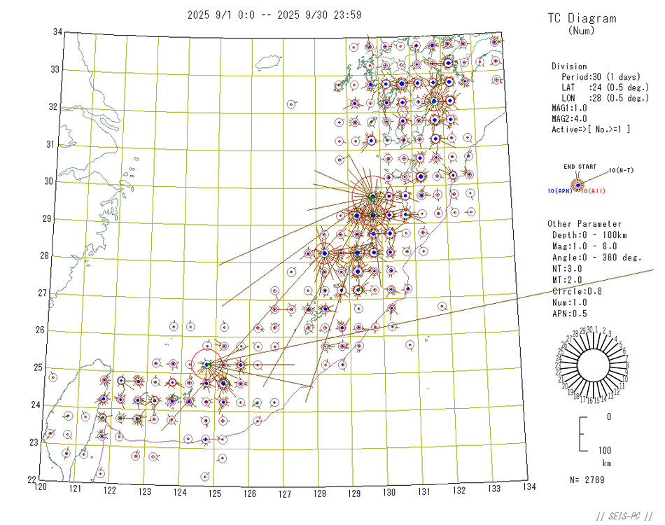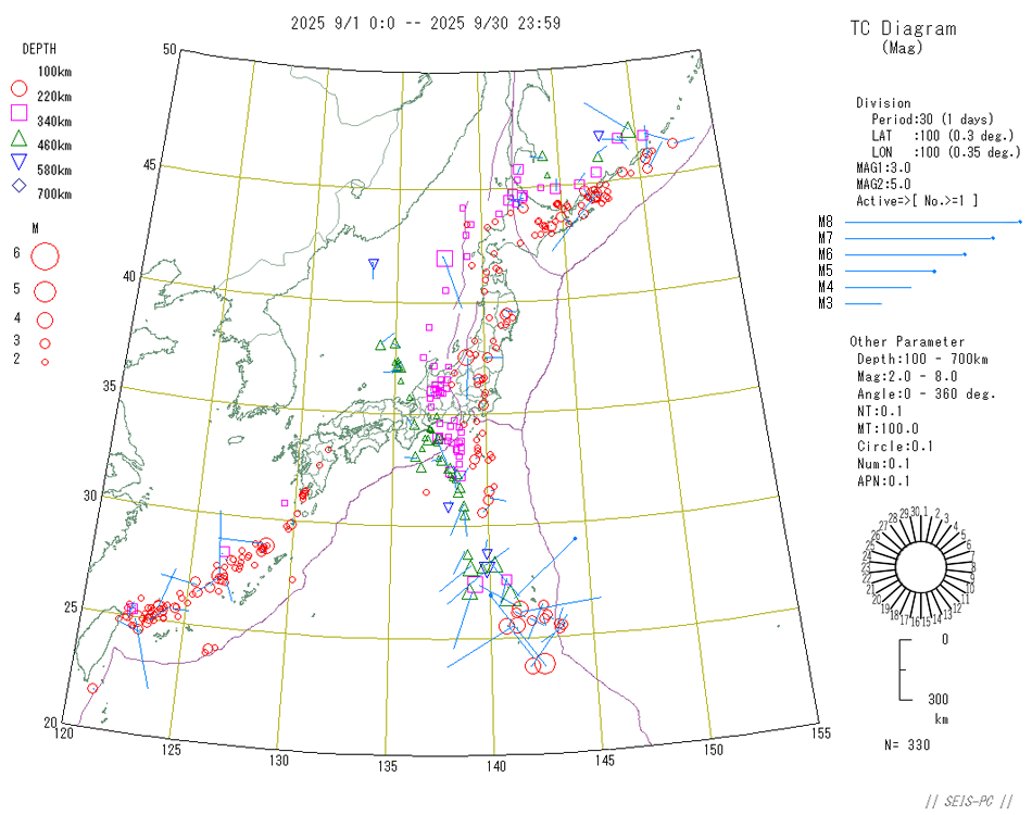 使用ソフト:SEIS-PC 震源データ:気象庁一元化震源